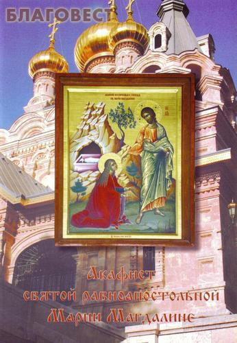 Уготованная Господом к равноапостольному служению, святая Марие Магдалино, возлюбленному ти Христу последовала еси; темже песньми с любовию восхваляем тя: ты же, яко имущая дерзновение велие ко Господу, от всяких нас бед молитвами твоими избави, да с радостию непрестанно зовем ти: Радуйся, святая равноапостольная Марие Магдалино, паче всех благ сладчайшаго Господа Иисуса возлюбившая.