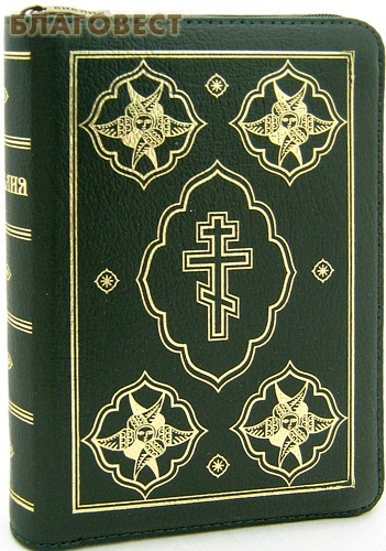 Стильно оформленное подарочное издание Библии в кожаном переплете на молнии, с золотым тиснением на обложке, трехсторонним золотым обрезом и шелковым ляссе.