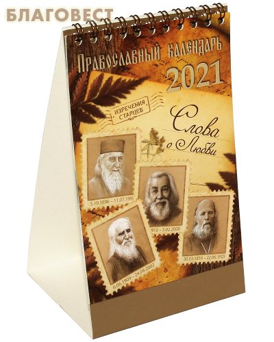 Православный настольный перекидной календарь на 2021 год содержит цитаты о Любви из православных старцев на каждый месяц.