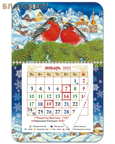 ООО Орландо Православный календарь-магнит с отрывным блоком "Снегири" на 2022 год