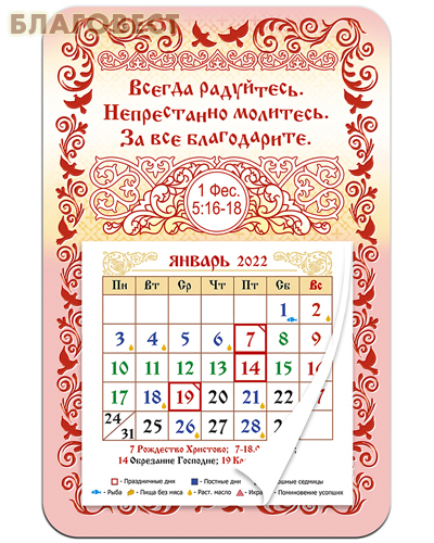 ООО Орландо Православный календарь-магнит с отрывным блоком "Всегда радуйтесь" на 2022 год