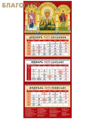 Православный квартальный календарь с указанием трапез и постов на 2023 год