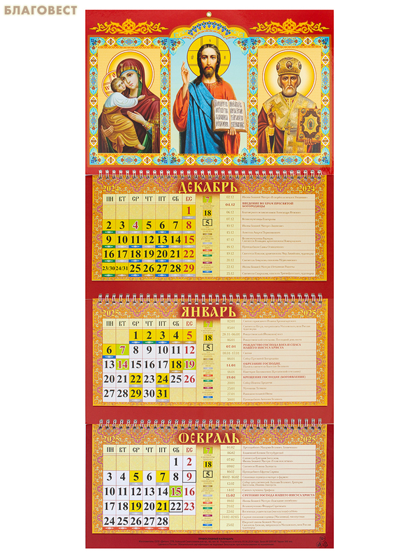 МэриАрт Православный квартальный календарь с указанием трапез и постов на 2025 год