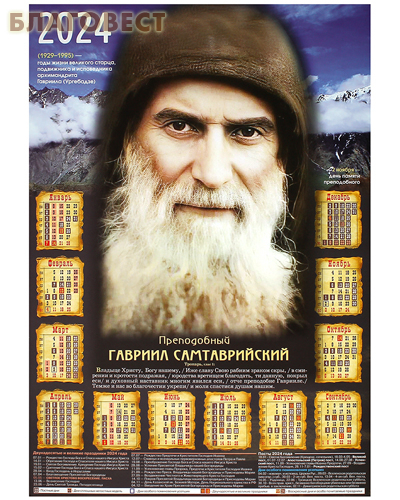 Издательский центр БФПОиСП имени святого апостола Иоанна Богослова Православный листовой календарь Преподобный Гавриил (Ургебадзе) на 2024 год