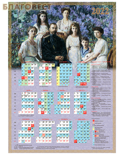Издательство Московской Патриархии Русской Православной Церкви Православный листовой календарь с указанием трапезы на 2022 год