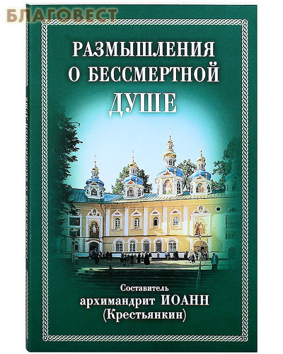 Книга «Размышления о бессмертной душе» была составлена архимандритом Иоанном (Крестьянкиным; 2006), духовником Свято Успенского Псково-Печерского монастыря. В настоящий сборник вошли высказывания святых отцов и мыслителей Православной Церкви о происхождении и духовной природе человеческой души, о путях ее спасения. Читатели найдут здесь ответы на волнующие вопросы о конце мира и о судьбах России. Четвертое издание до полнено выдержками из проповедей отца Иоанна, которые в начале XXI века стали ярким подтверждением особой актуальности этой книги.