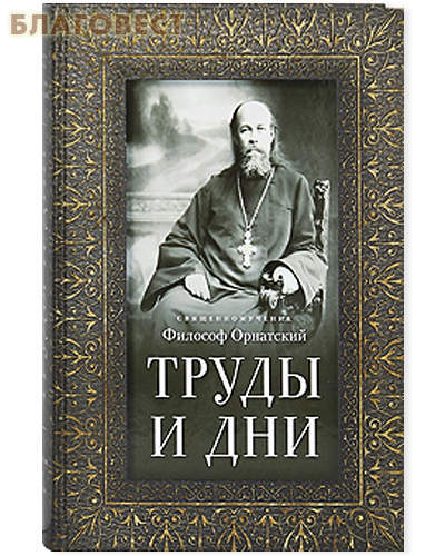 «Труды и дни» — сборник творений священномученика Философа Орнатского, выдающегося церковного деятеля, многоопытного пастыря, блестящего оратора, прозванного в народе Златоустом. Его слово — яркое, живое, горящее верой, богословски глубокое, наполненное сострадающей и назидающей любовью, — призывает жить по-христиански, жить для Неба, следовать за Господом Иисусом Христом. И слово это не расходится с его делами. Однажды отец Философ сказал: «Если нам нужно пострадать и даже умереть за правду, это надо будет сделать». Таким и был его путь — отец Философ остался верен Богу и Церкви Его даже до смерти, смерти же крестныя.
